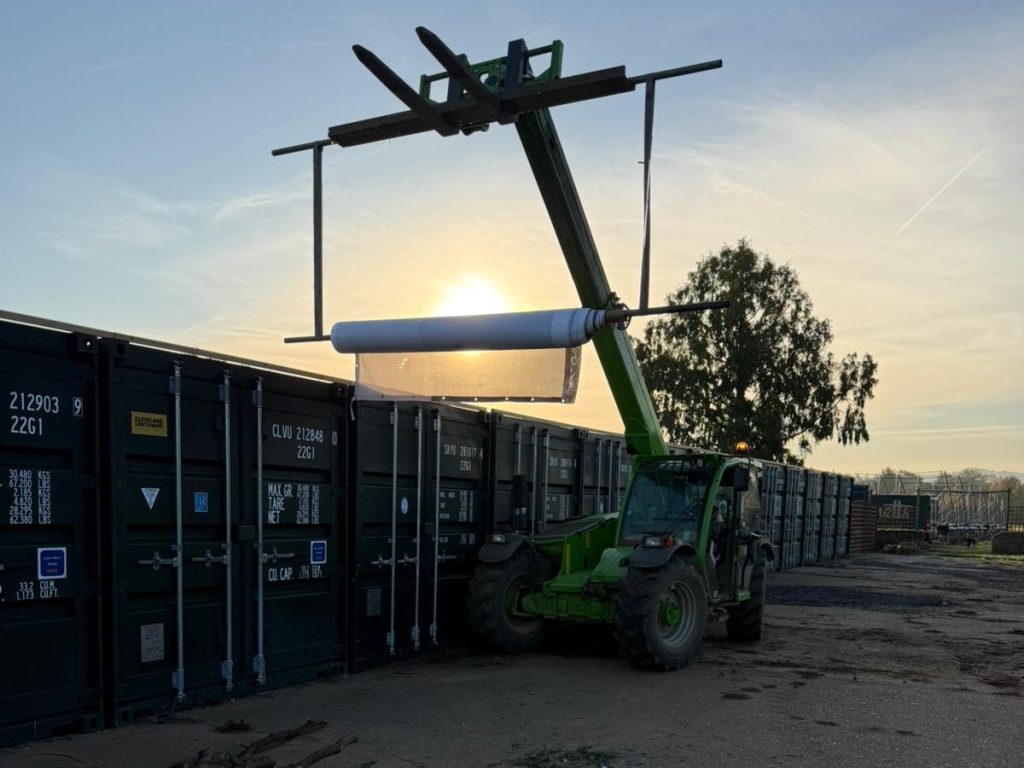 The PVC mesh backdrop was printed in one section and fixed to the containers, ensuring a smooth and consistent image across the entire span.